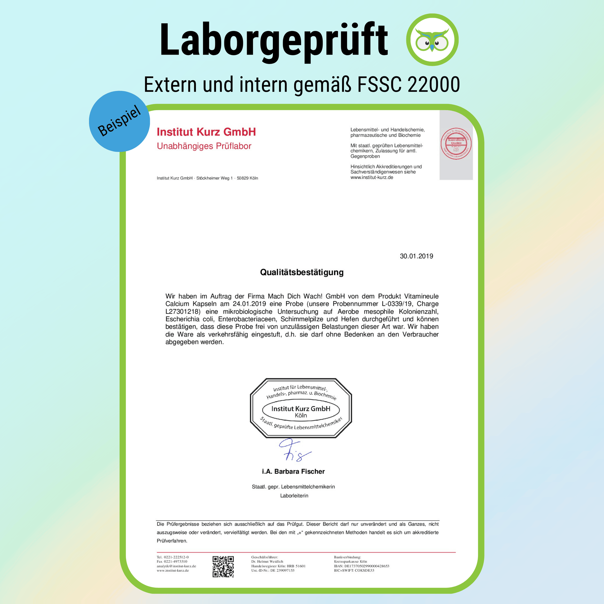 Die Produktion erfolgt ausschließlich in Deutschland. Während andere Hersteller von Nahrungsergänzungsmitteln die gesetzlichen Mindestanforderungen erfüllen, werden alle unsere Produkte nach der führenden Qualitätszertifizierung FSSC 22000 in Deutschland produziert. Diese Zertifizierung umfasst umfassende Sicherheitskonzepte für die Konzeption, Lieferantenauswahl, Rohstoffprüfung und Herstellungsprozesse von Nahrungsergänzungsmitteln, um stets die höchstmögliche Produktsicherheit zu gewährleisten.