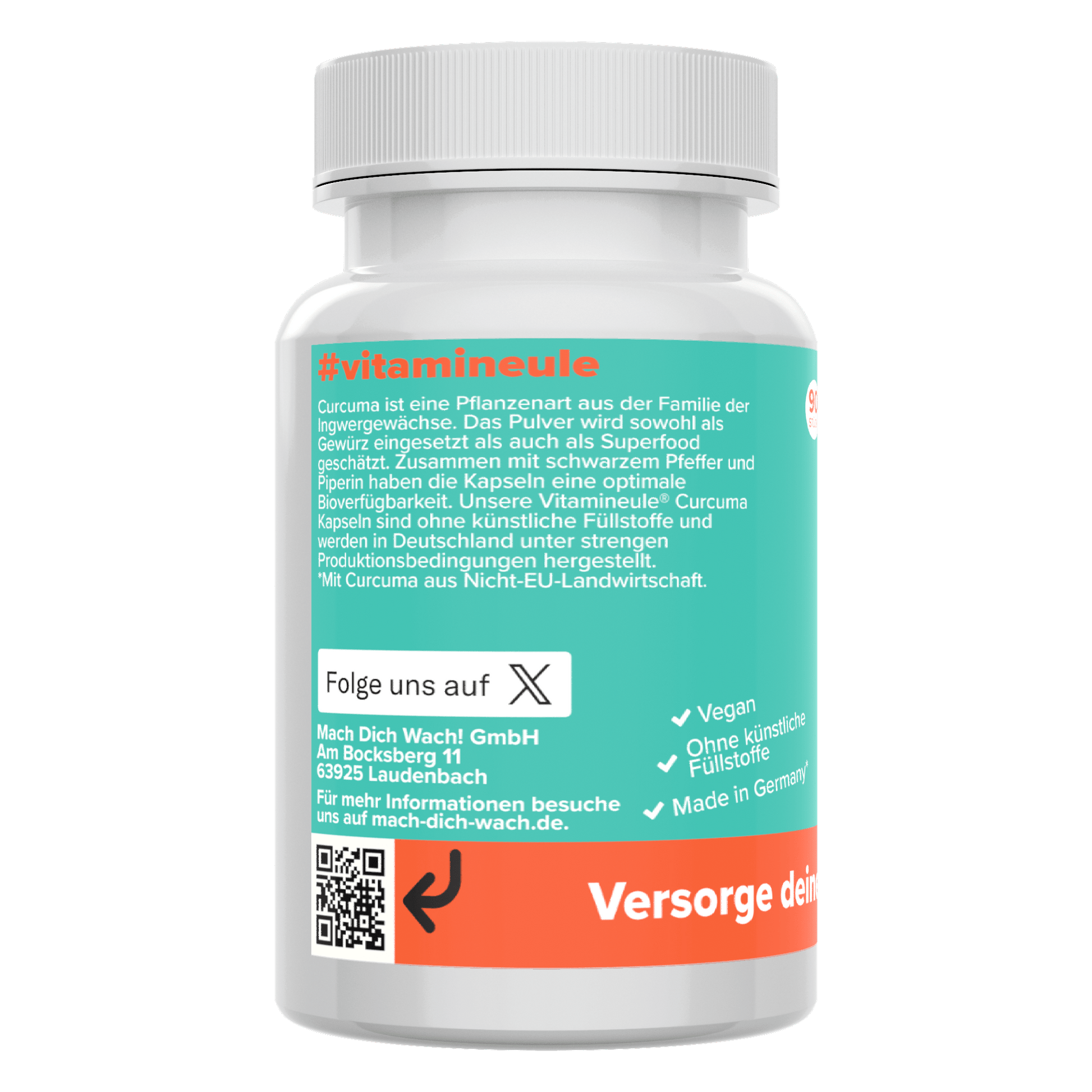 - Mit hohem Curcumin-Anteil, Piperin aus schwarzem Pfeffer