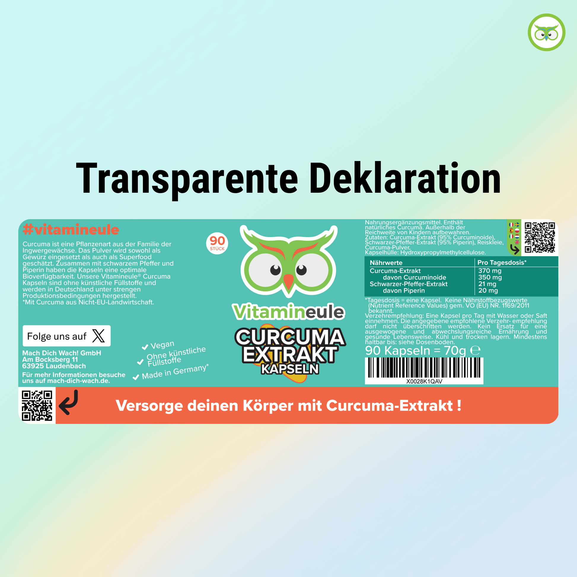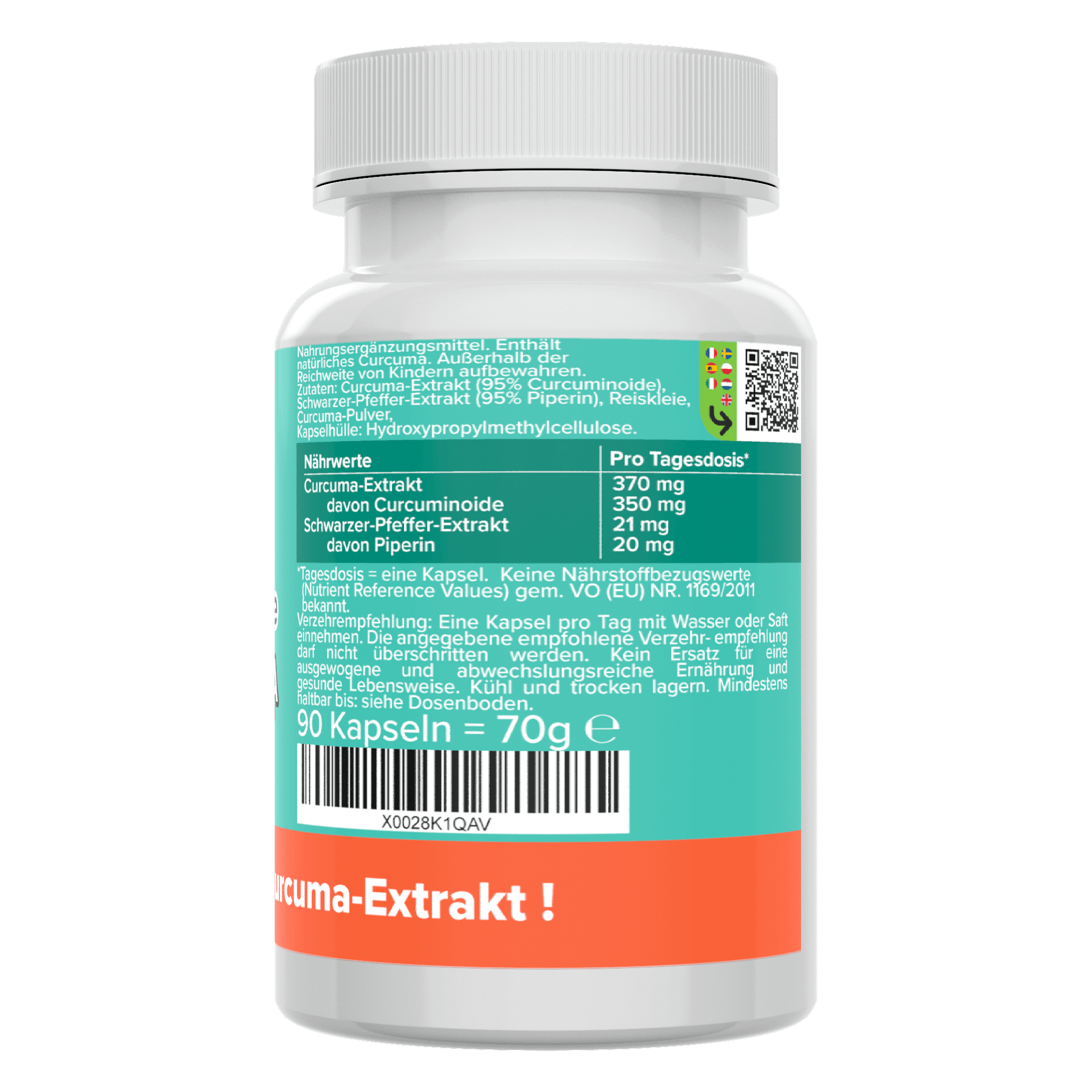 - 370 mg Curcuma-Extrakt mit 350 mg Curcuminoiden