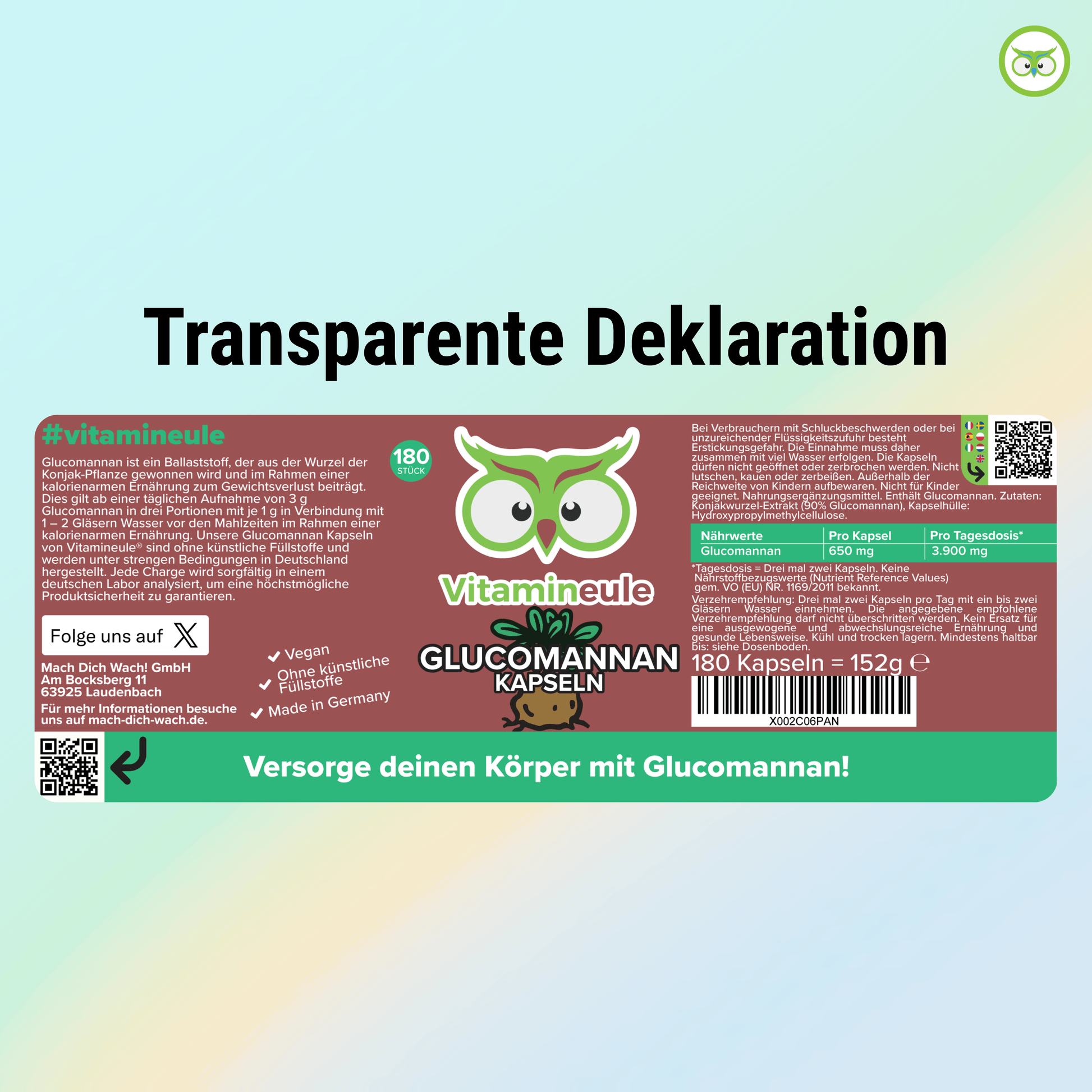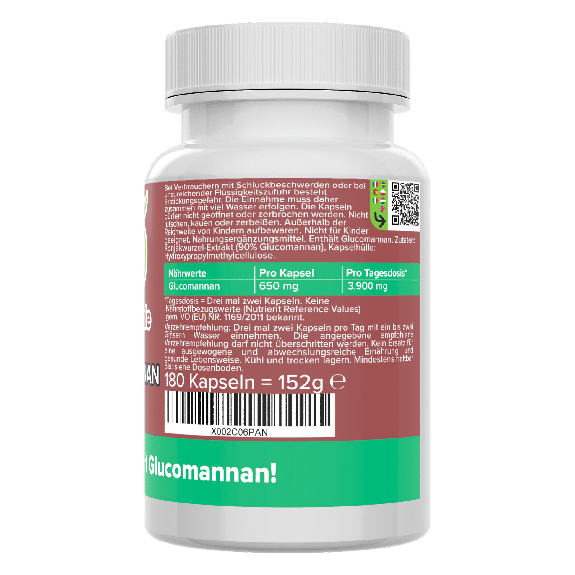 - 180 Glucomannan Kapseln mit 650 mg Glucomannan