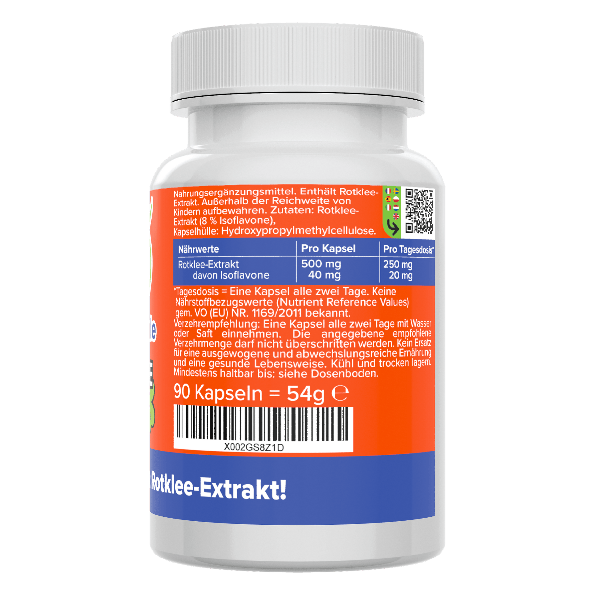 - 90 Rotklee Kapseln mit 500 mg Rotklee-Extrakt pro Kapsel